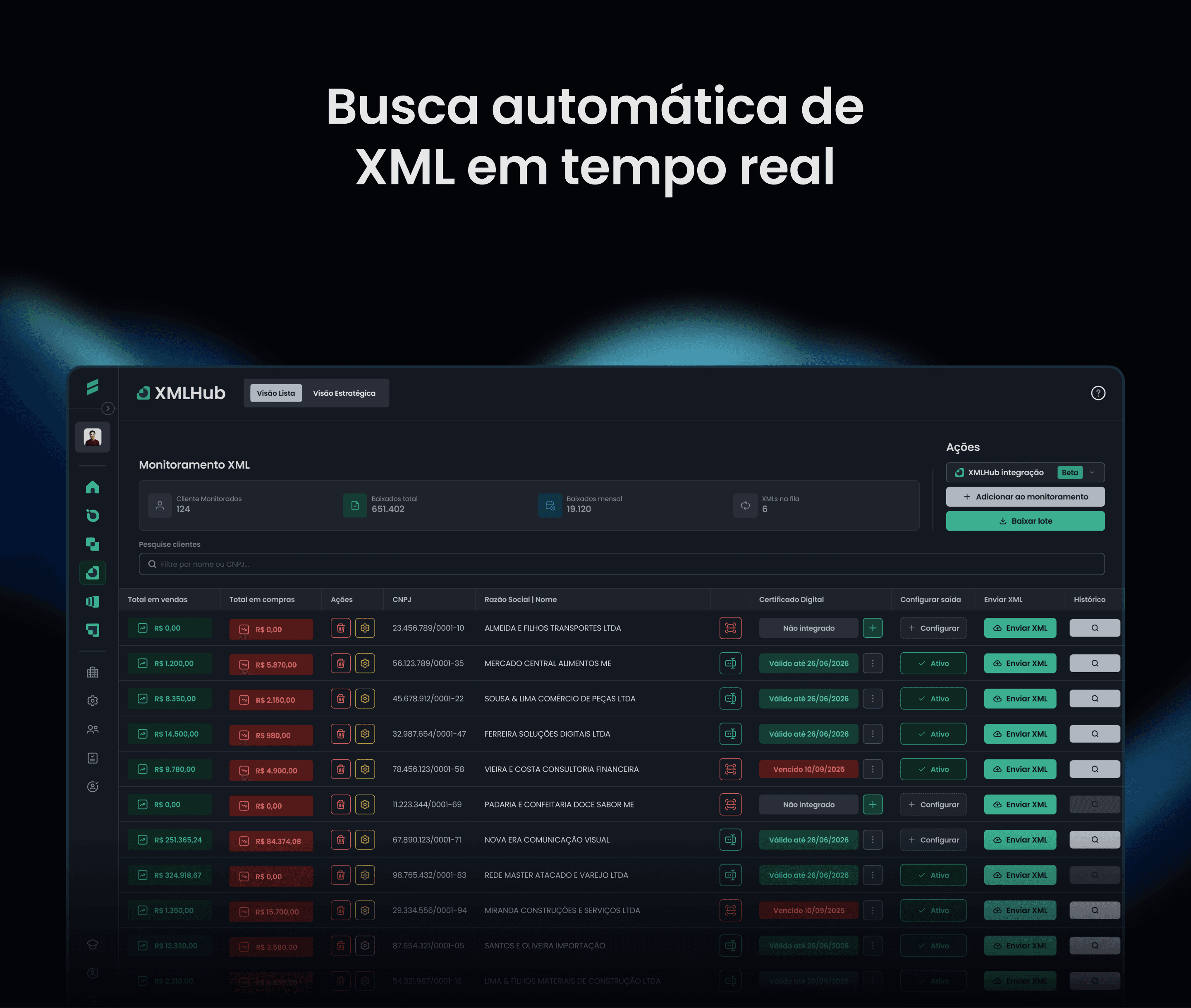 Busque automaticamente notas de entrada e saída em todos os modelos fiscais. Fechamento contábil mais rápido e seguro, sem depender do cliente.